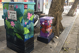 Hình ảnh tủ điện dường như đã quá quen thuộc với người dân hà nội với những tờ rơi dán quảng cáo... làm mất mỹ quan thành phố Trong thời gian vừa qua những họa sỹ tình nguyện đã đổi màu áo cho các tủ điện ở thành phố. Hình ảnh được các họa sỹ chọn đó chính là các loài hoa.